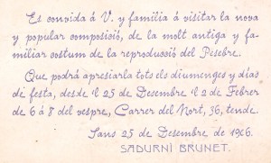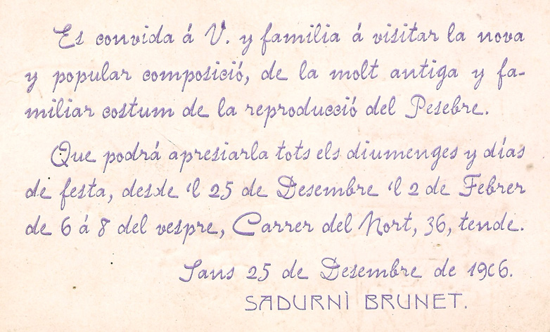 Targeta d’invitació per visitar el pessebre instal·lat al domicili del carrer del Nord, a Barcelona, 1906 M'agrada S'està carregant...