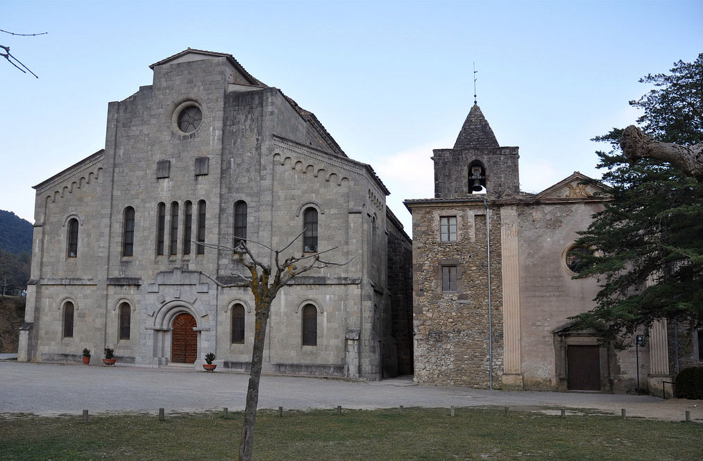 Vista frontal de les esglésies nova i vella de Santa Maria del Collell, a Sant Ferriol (Foto: www.monestirs.cat)