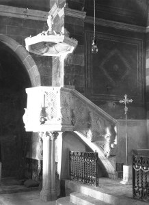 Visió lateral de la trona de l’església de Sant Vicenç, a Llançà, 1941 (ACGAX. Fons Sadurní Brunet Pi. Autor: Sadurní Brunet)