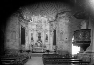 Vista parcial de l’església de Santa Eulàlia de Noves, a Garriguella, 1941 (ACGAX. Fons Sadurní Brunet Pi. Autor: Sadurní Brunet)