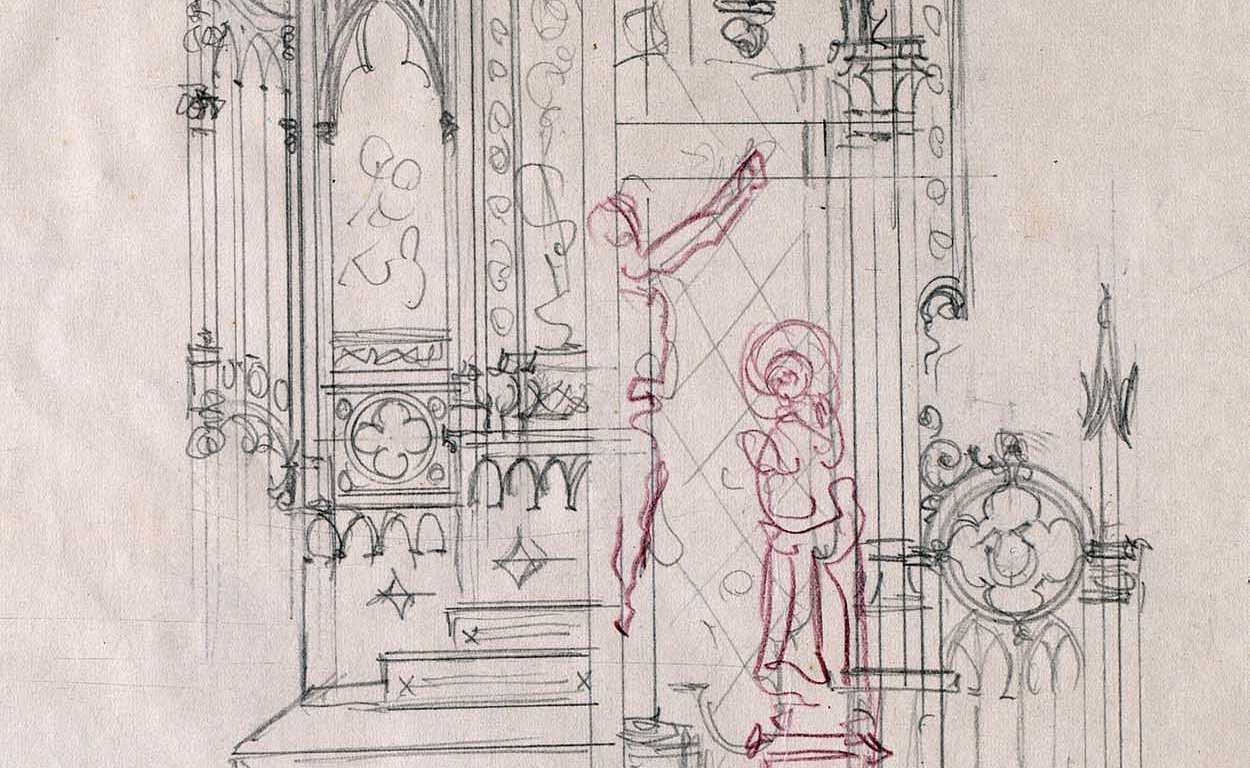 Esbossos d’altar i trona de l’església de Sant Julià, a Fortià, 1948