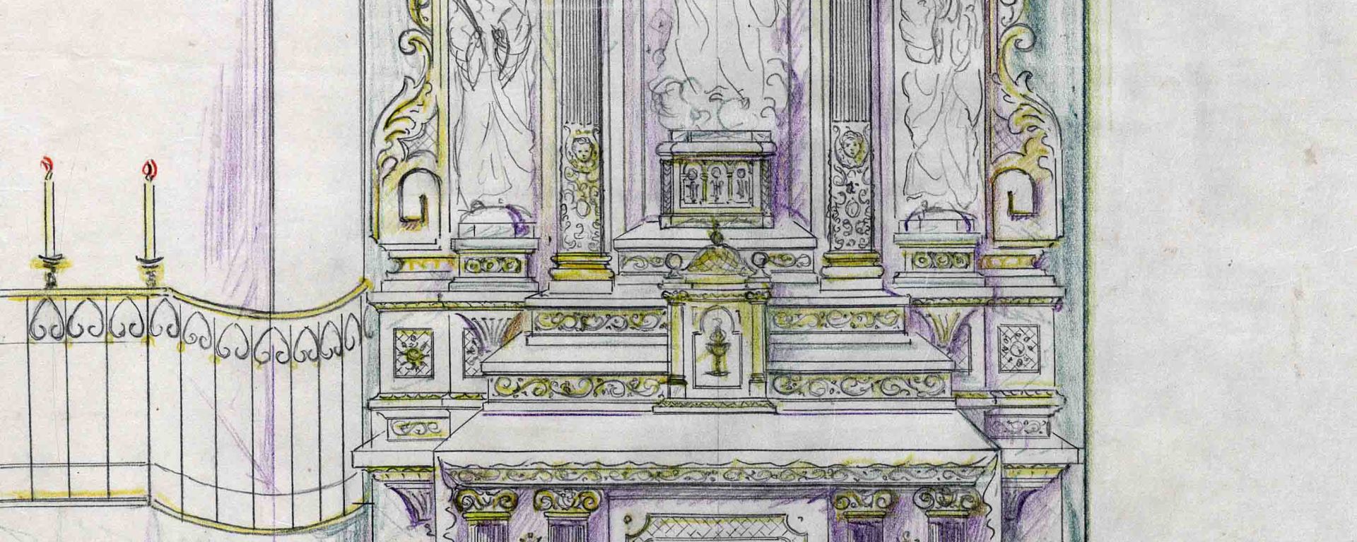 Projecte de l’altar de la Mare de Déu de Gràcia del santuari de la Fontsanta, a Jafre, 1945