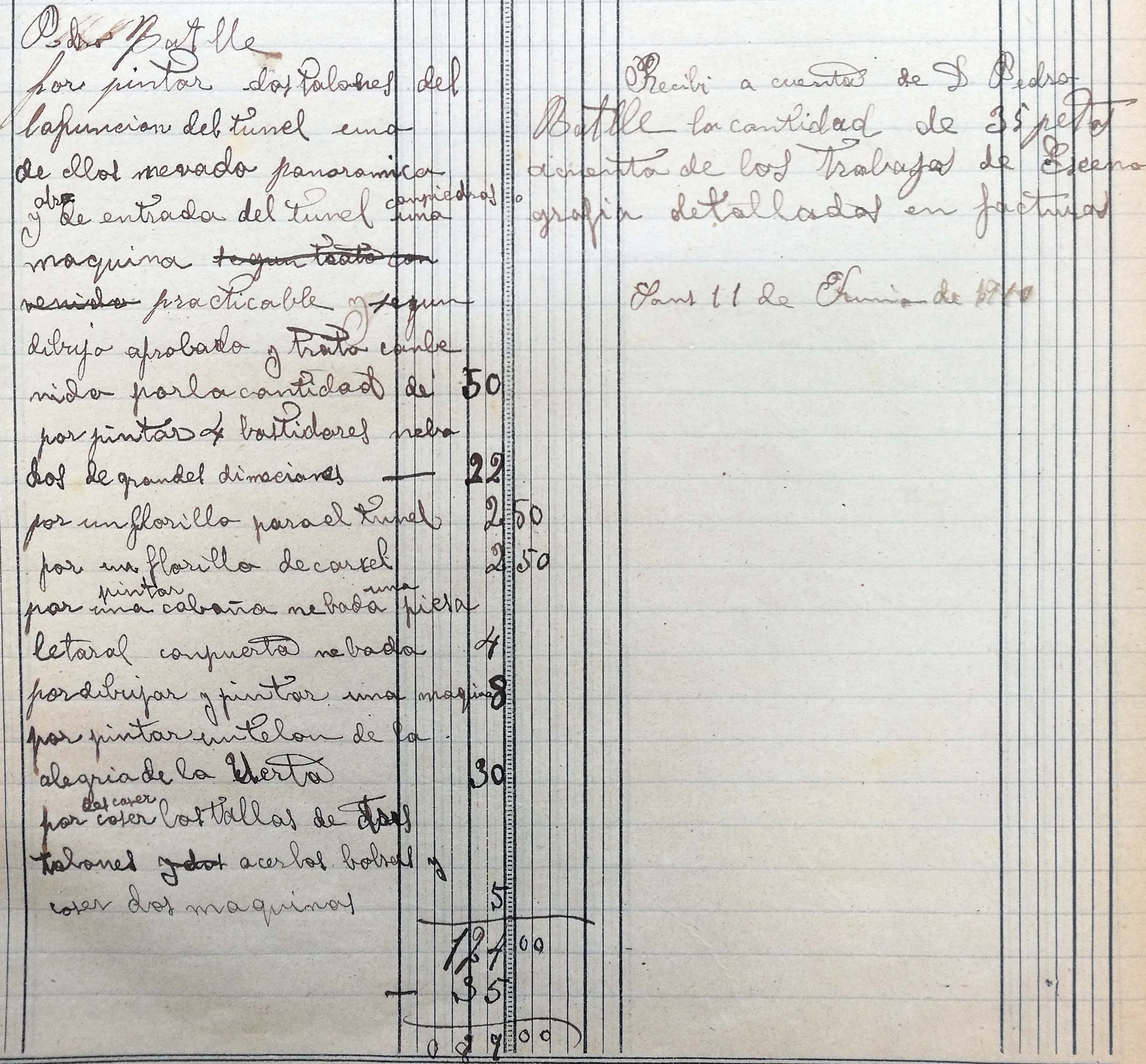 Anotacions de feines relacionades amb escenografies, 11.6.1910 (ACGAX. Fons Sadurní Brunet Pi. Dietaris)