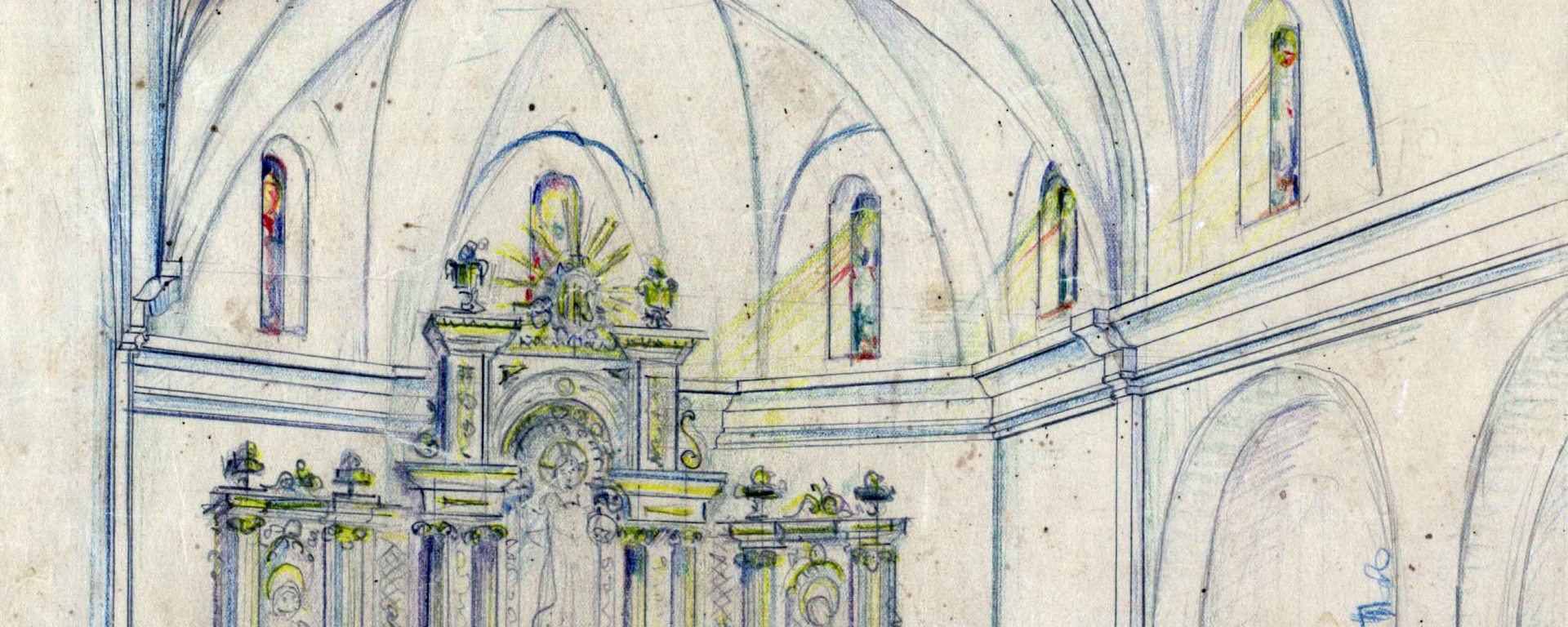 Esbós del projecte de l’altar major per a l’església de Sant Salvador, a Castellfollit de la Roca, 1945