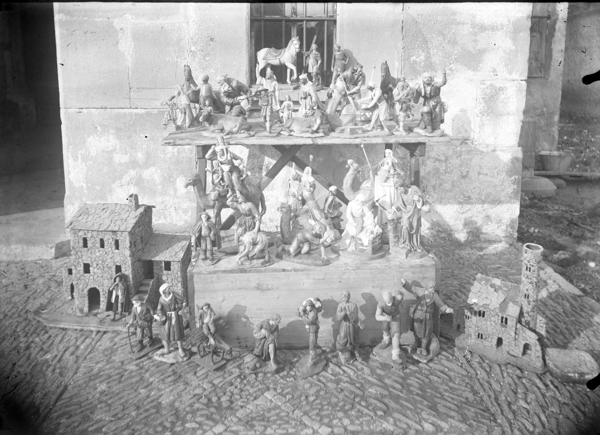 Figures de pessebre de Sadurní Brunet per posar a la venda, c. 1930 (ACGAX. Fons Sadurní Brunet Pi. Autor: Sadurní Brunet)