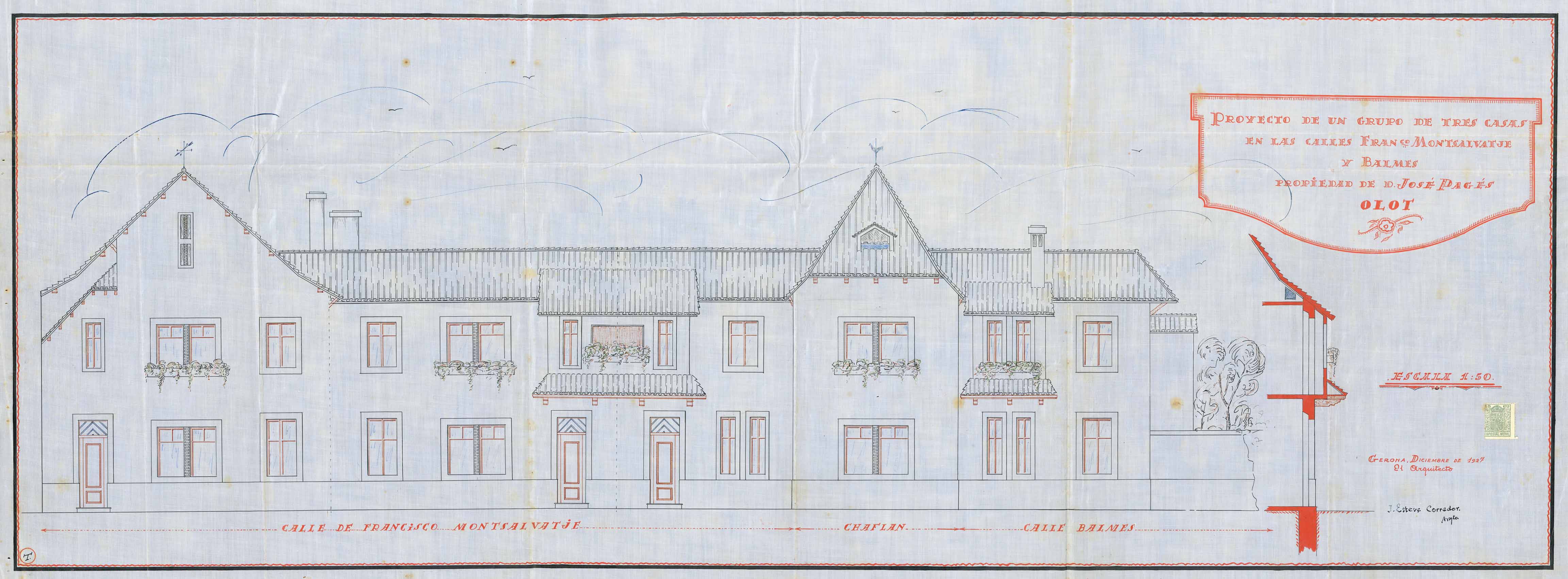 El projecte estava signat per Josep Esteve Corredor, arquitecte municipal d’Olot entre els anys 1923 i 1934, i és probable que, a més de guixaire i decorador, Sadurní Brunet exercís de mestre d’obres.