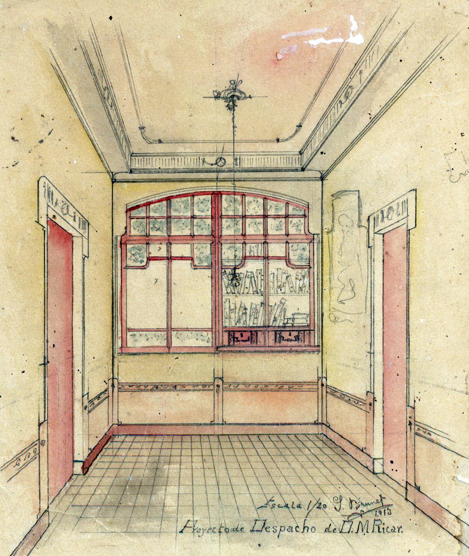 Projecte de decoració del despatx de la casa de Manuel Ricart, 1913 (ACGAX. Fons Sadurní Brunet Pi. Codi atribuït: 6.4.2) Projecte de decoració del despatx de la casa de Manuel Ricart, 1913 (ACGAX. Fons Sadurní Brunet Pi. Codi atribuït: 6.4.2)